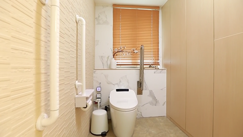 改造后的衛生間,明亮寬敞,精心設計的扶手路線,無一不體現了設計師人性化的關懷。