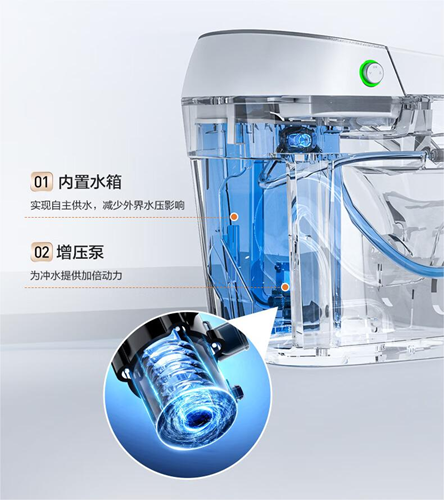 為解決低水壓問題,部分品牌采用“內(nèi)置水箱+增壓泵”方案。通過提前儲(chǔ)水并加壓釋放,實(shí)現(xiàn)穩(wěn)定沖力。優(yōu)點(diǎn)是不受外部水壓限制,但缺點(diǎn)也明顯:水箱長期儲(chǔ)水易滋生細(xì)菌,且占用內(nèi)部空間,增加故障率和維護(hù)成本。