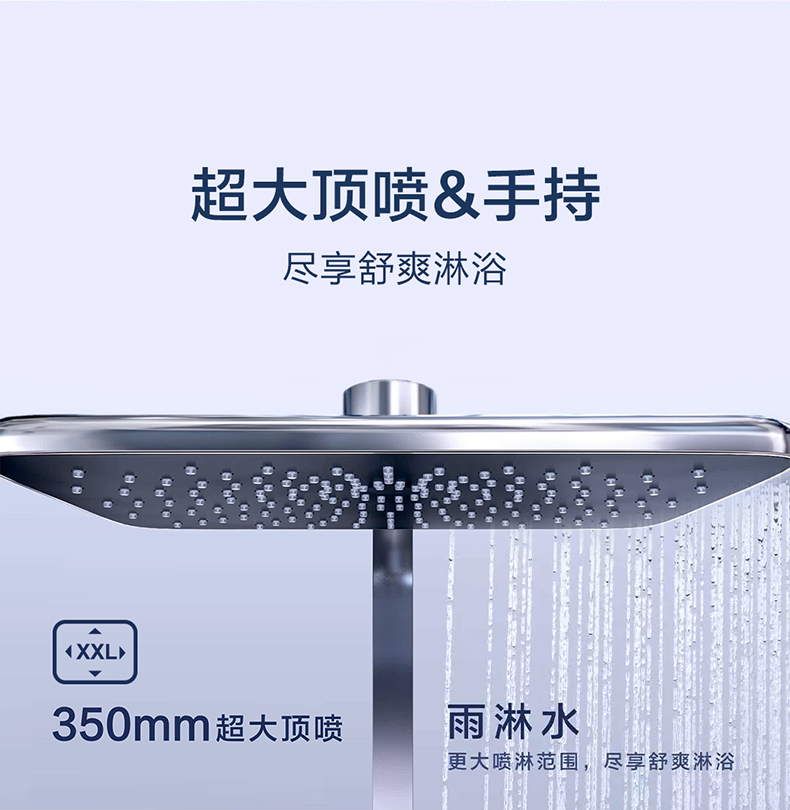 - 350mm超大頂噴,更大噴淋范圍,盡享舒爽淋浴