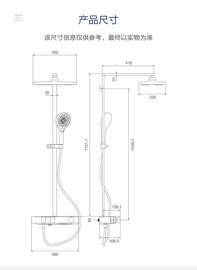- Φ130mm大面板手持,三種淋浴體驗(yàn),多重享受