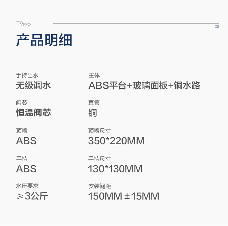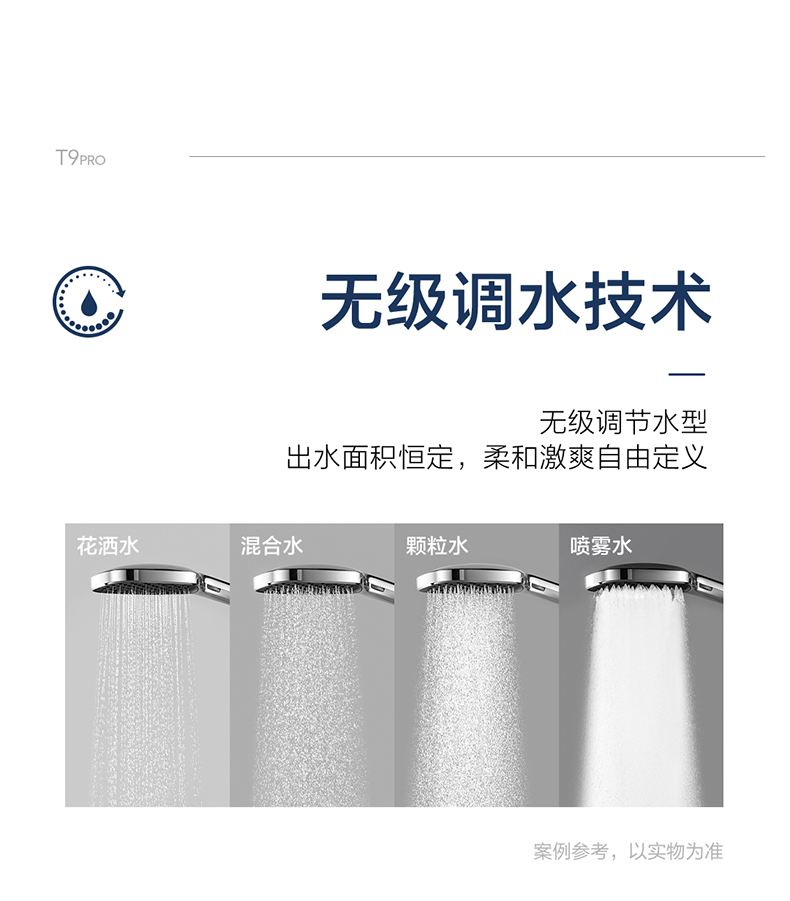 - Φ130mm大面板手持,無級調水,柔和激爽自由定義
