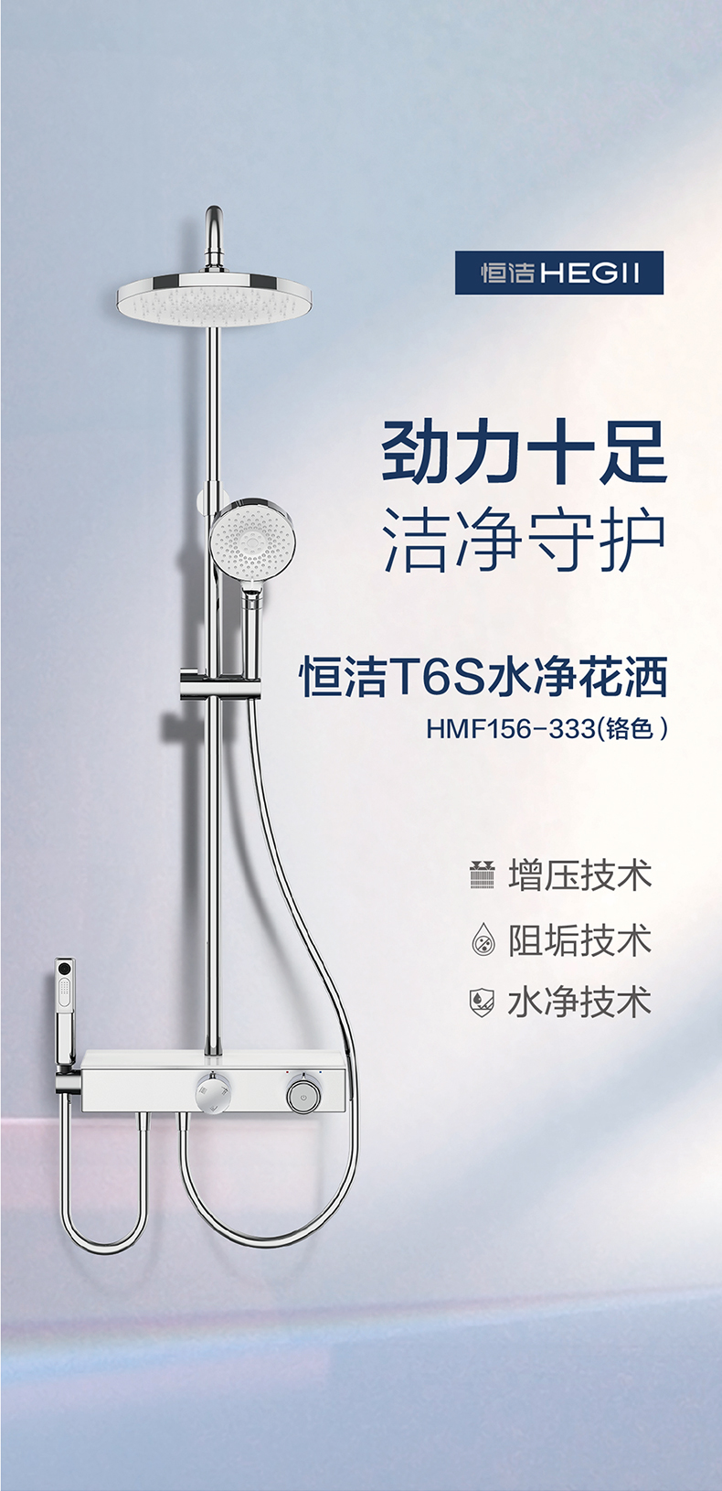- 恒潔增壓技術(shù),0.45mm極致細(xì)孔設(shè)計(jì),出水密集柔和