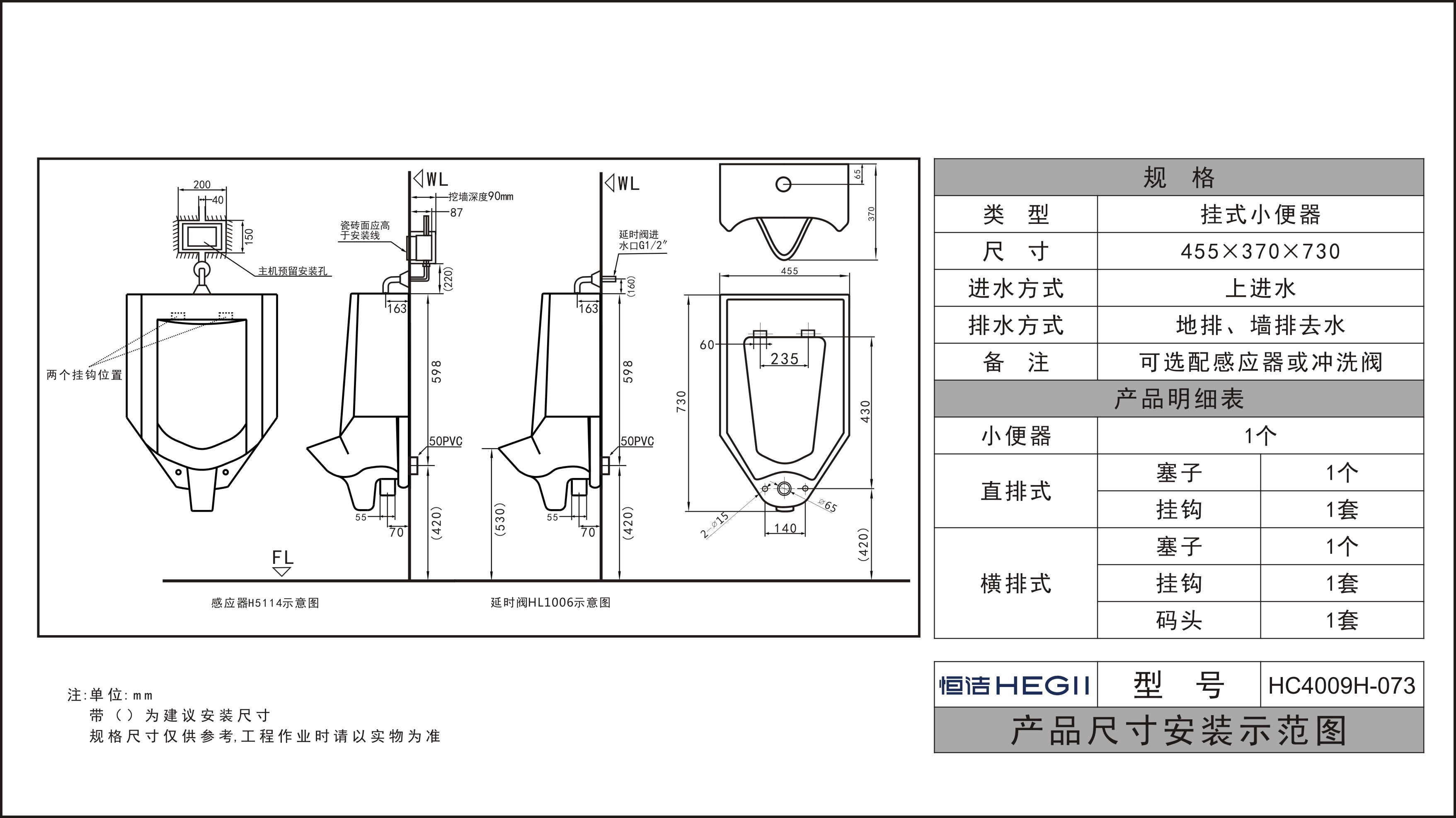 HC4009H-073掛式小便斗