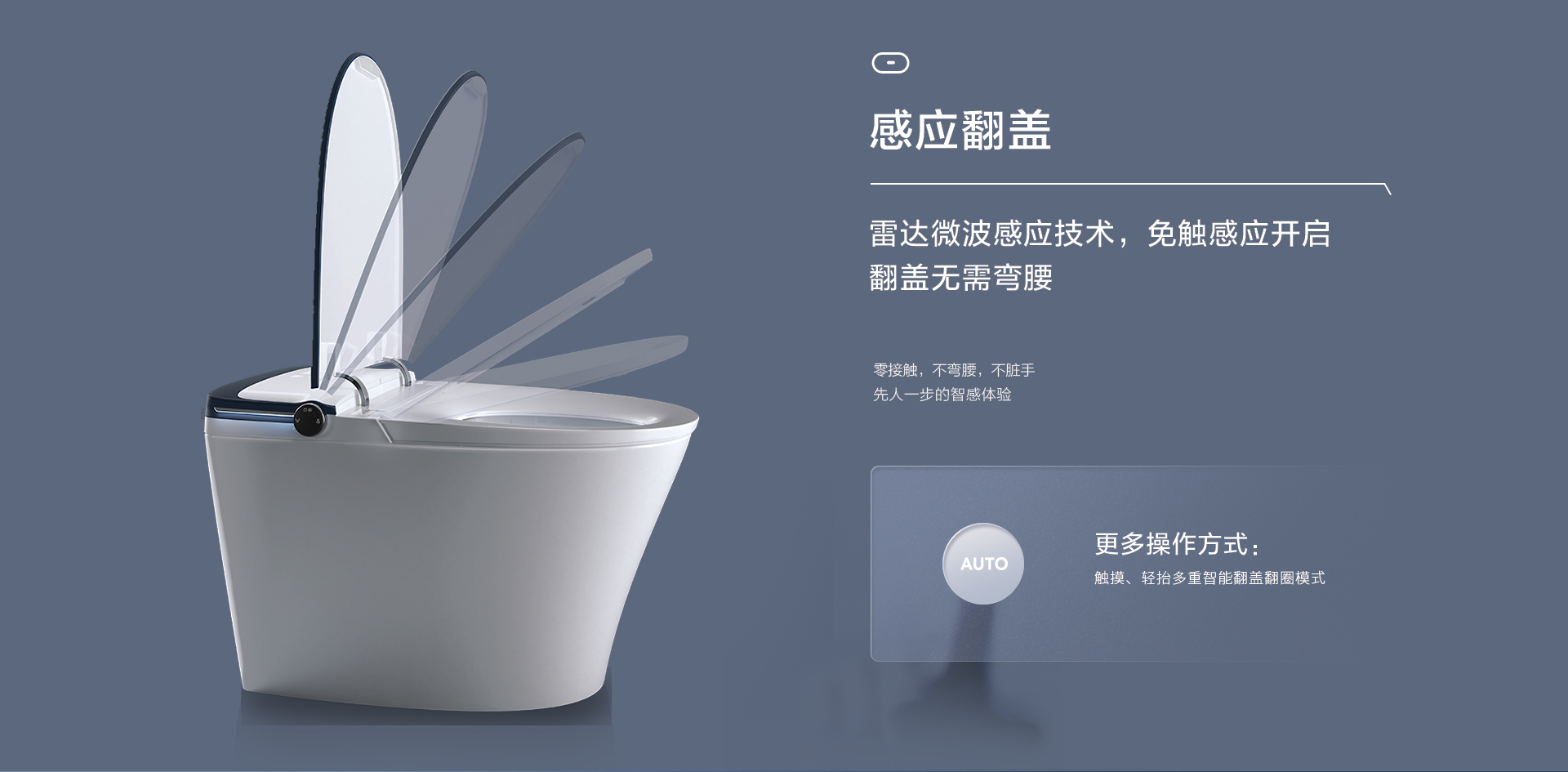 感應翻蓋:雷達微波感應技術(shù),免觸感應開啟,翻蓋無需彎腰