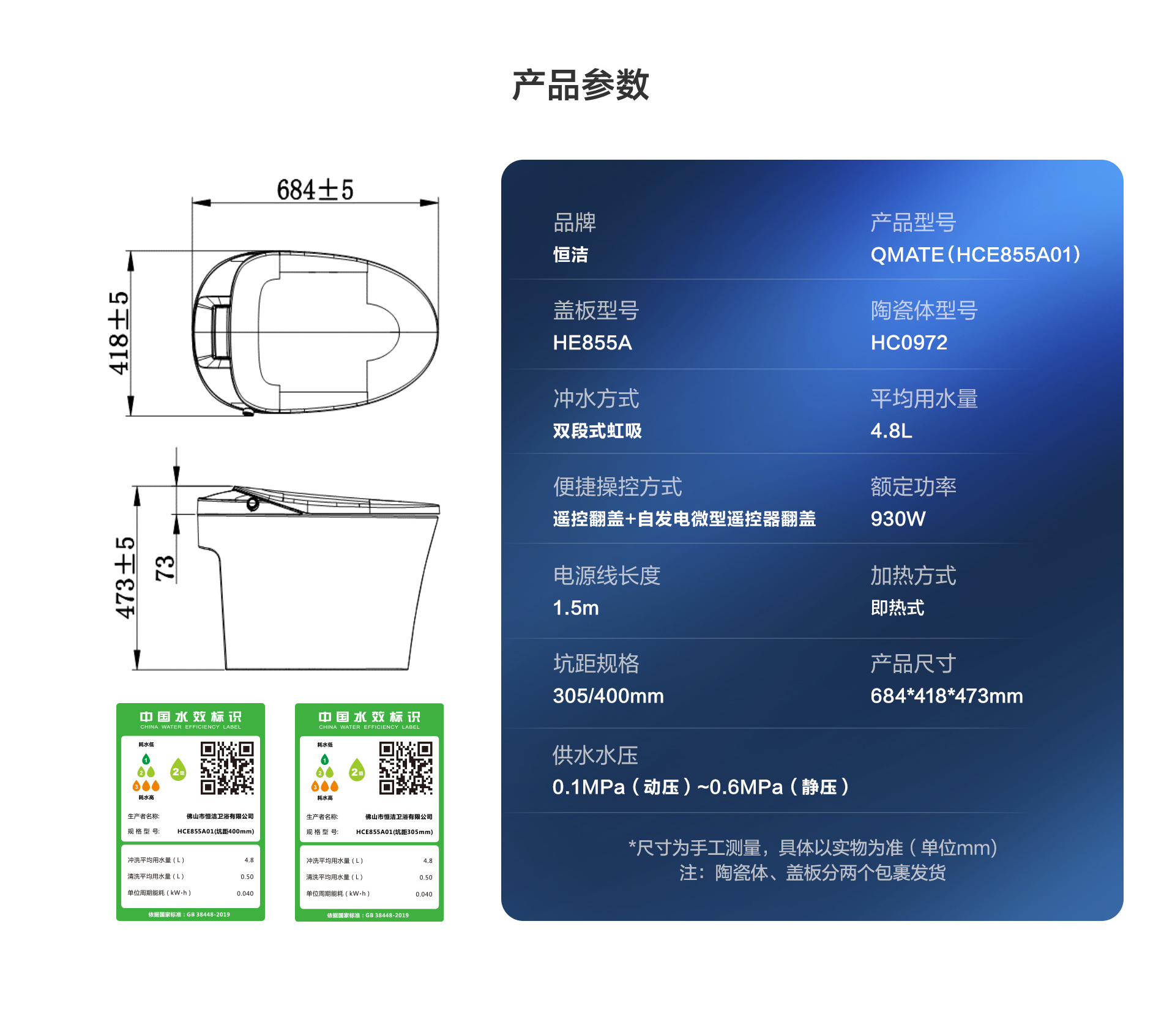 - 恒潔易沖系統(tǒng):0.1MPa低壓勁沖,人性化大小沖設(shè)計