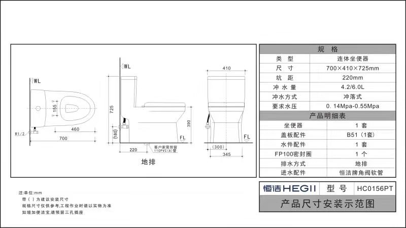 HC0156PT節水坐便器(地排)