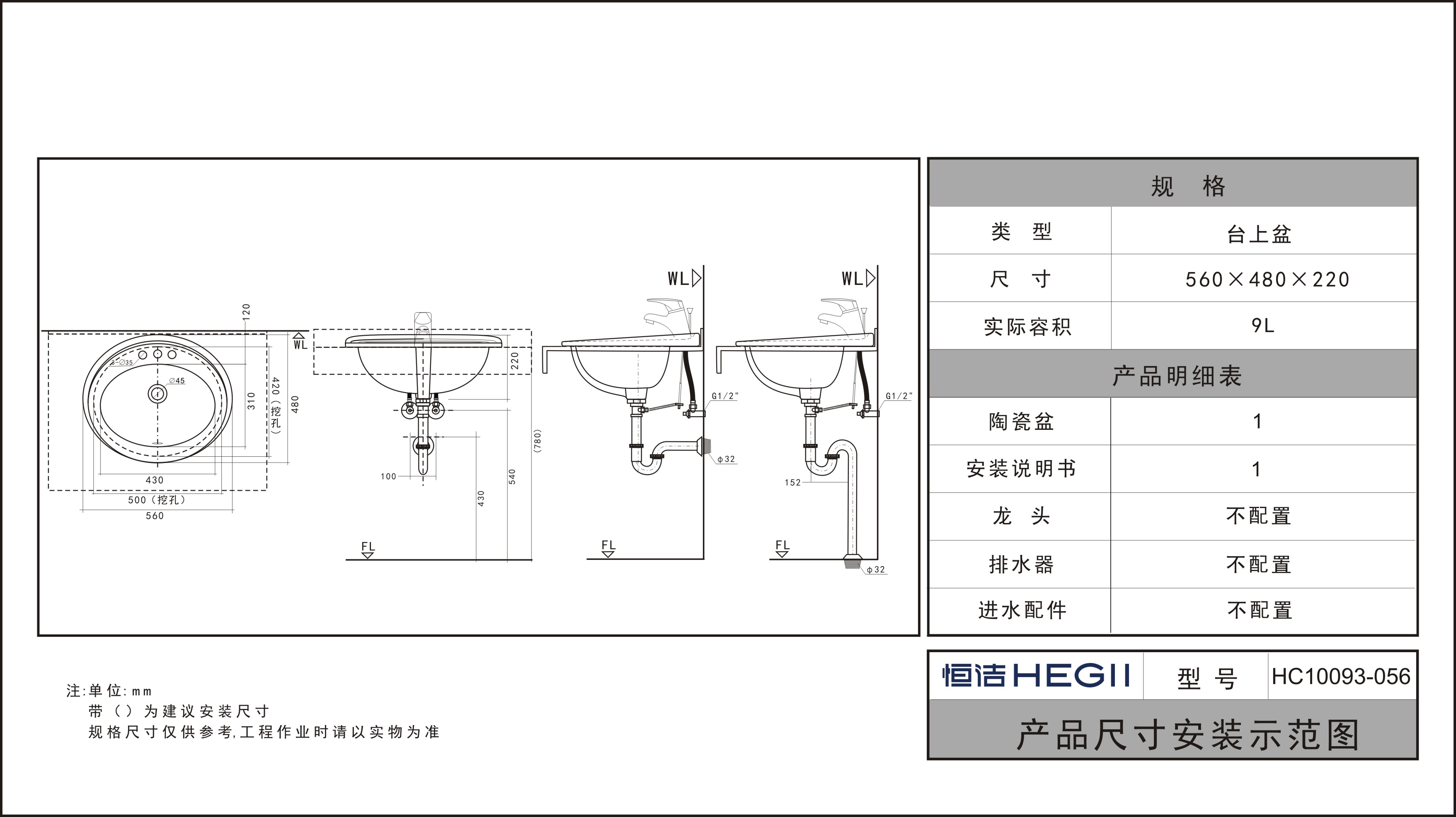 單/三孔嵌入式橢圓臺上盆,滿足不同的使用需求