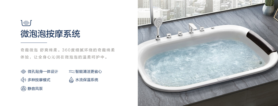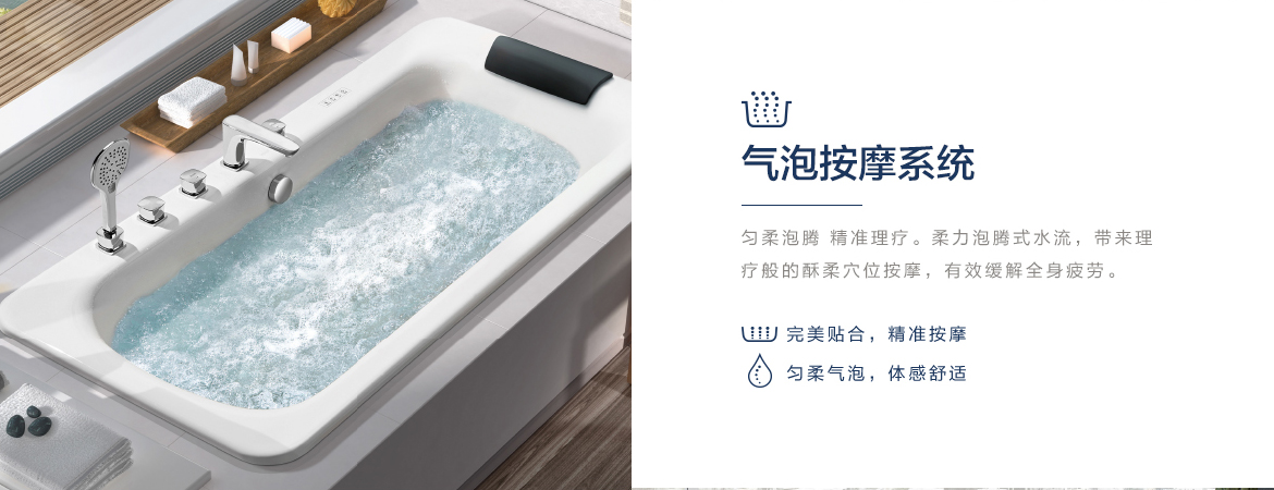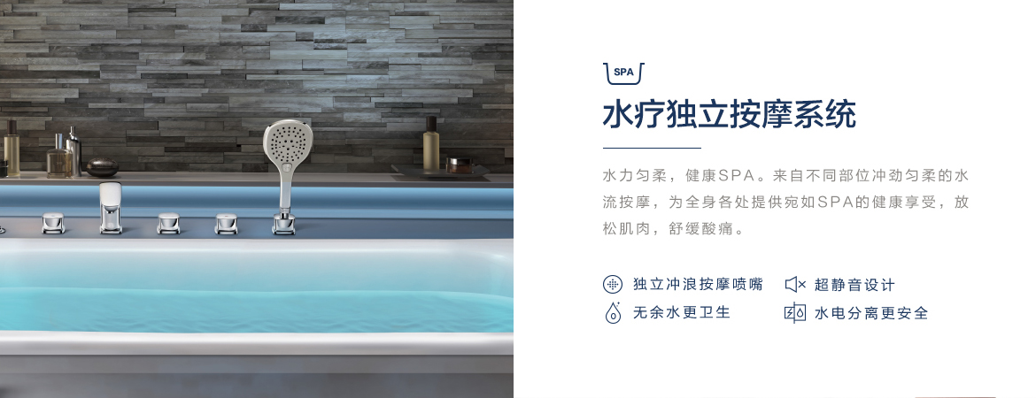 在家也可以享受SPA按摩體驗,恒潔水悅SPA技術,可提供四種按摩系統,